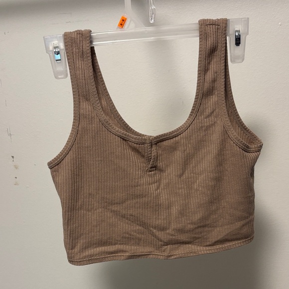 Brown Ribbed Crop Top