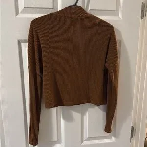 Brown Ribbed Long Sleeve Top