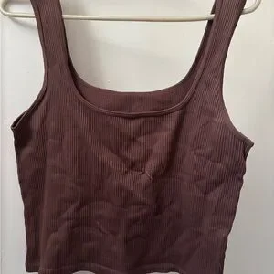 Brown Ribbed Tank Top