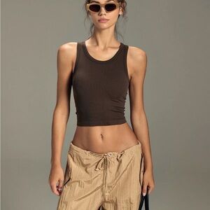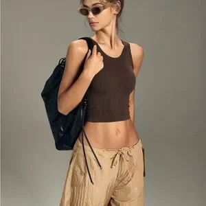 Stylish brown ribbed tank top. Perfect for casual wear.