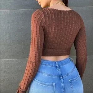 Brown Ribbed Wrap Top