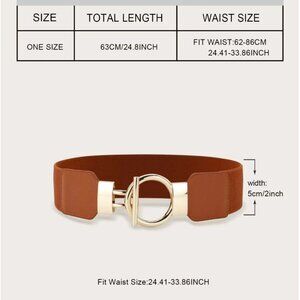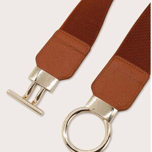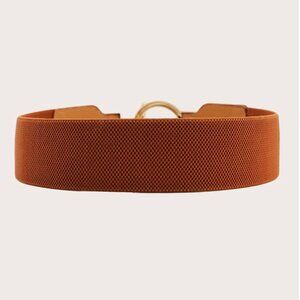 Brown Ring Metal Buckle Elastic Belt
