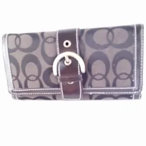 This sophisticated brown wallet showcases the iconic Coach monogram pattern,