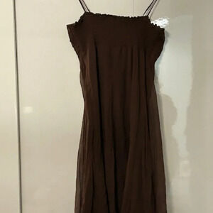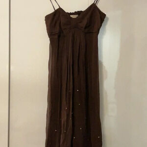 Brown, Silk Dress with Spaghetti Straps and Sequins, Sz 10