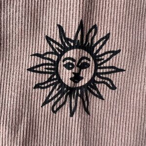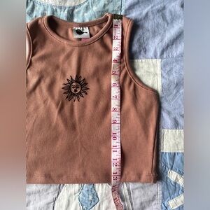 Brown Sleeveless Crop Top with Sun Design Boho Girlie Girl Summer Cute Small