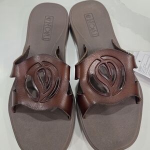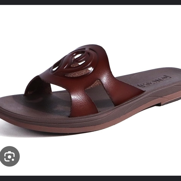 Comfortable and stylish brown slide sandals perfect for casual outings. Enjoy a blend of fashion and function with these versatile shoes.