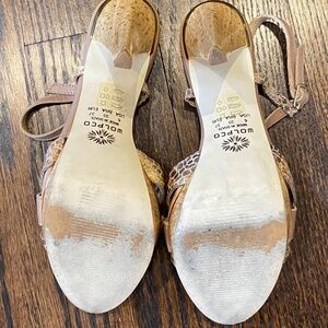 Beautiful platform heels. Cork heel and platform with beige and brown snake print straps. Gold accents all over. Minimal signs of wear. Scuffing on the bottom ( please see photos). Made in. Brazil. Brand is WOLPCO. Size 6 USA, 35 BRA, 37 EUR