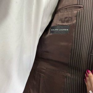 Brown Striped Wool-Cashmere Suit w/ Wide Leg Pants - Ralph Lauren (Black Label)