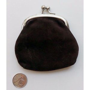 Brown Suede Genuine Leather Coin Purse - Change Wallet - Kisslock style