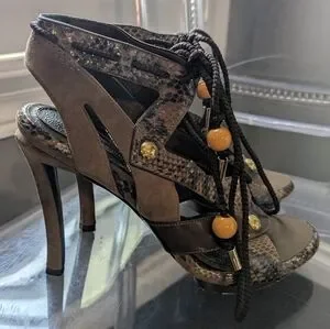 Step out in style with these elegant brown and black lace-up heels. Perfect for any occasion, these shoes offer a sophisticated touch to your ensemble.