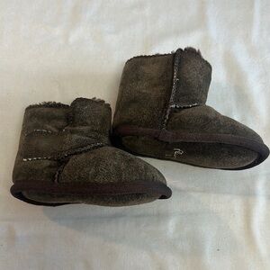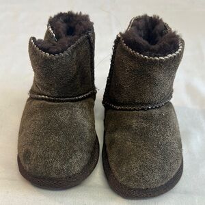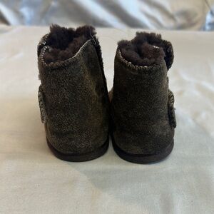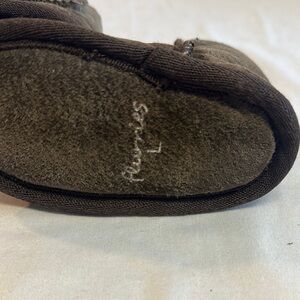 These brown slippers feature a suede-like exterior and a plush lining for ultimate comfort. Designed with a minimalist style, they offer a flexible sole ideal for indoor wear. Perfect for keeping your feet warm and cozy. Velcro closure for easy dressing.