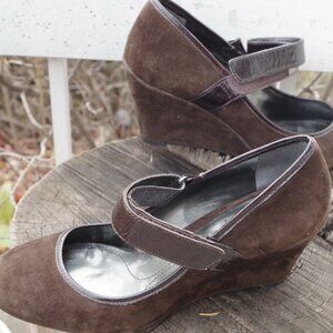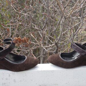 Brown Suede ladies wedge shoes by DKNC in very good condition .Size 61/2 color Christine Chocolate
