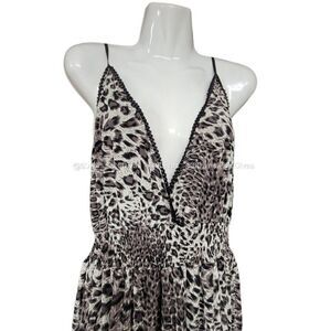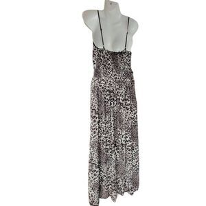 Brown and Cream Colored Animal Print Spaghetti Strap Summer Long Dress