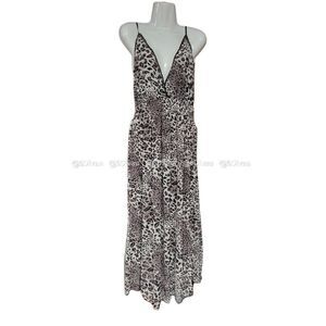 Brown Tan Leopard Print Spaghetti Strap Summer Long Maxi Dress