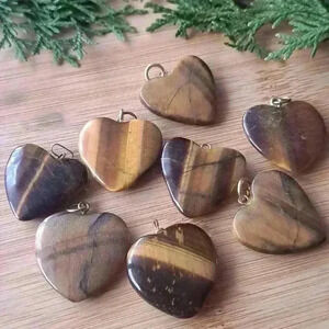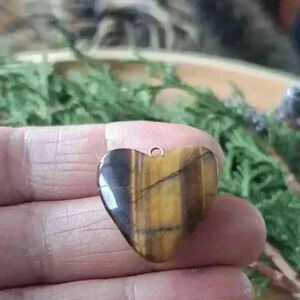 This heart-shaped pendant necklace features warm golden-brown tones with streaks of darker brown or black, made from natural tiger's eye stone.8 available