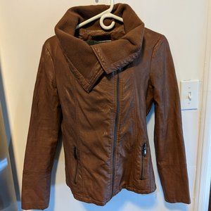 Vintage dynamite vegan leather jacket in an acorn brown colour. Size medium.