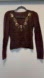 Elegant brown V neck sweater made of soft natural fabrics (45% Wool & 15% Mohair) with intricate gold sequins and embellishments, perfect for adding a touch of sophistication to your wardrobe.