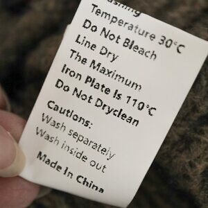 Basic fuzzy brown knit cardigan with 3 faux tortoise buttons. Made in China