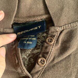 Brown button up with 2000's aesc detailing on the back and tag