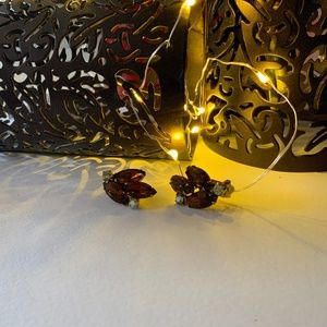 Brown and AB Flower Bead Cluster Clip on Earrings- in good condition