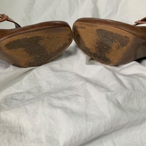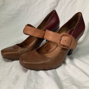 Brown and Burgundy Fossil Mary Jane Pumps 3 1/2” Heels size 7.5