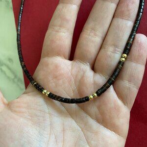 Brown and Gold Beaded Choker Necklace in Great Used Condition