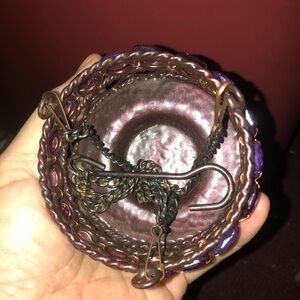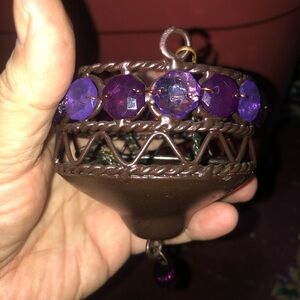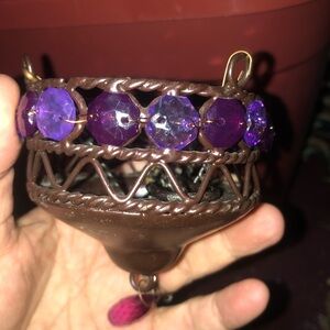 Brown and Purple Filigree Candle Holders with Chains. Vintage hanging holders in