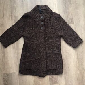 Brown cardigan with large buttons 3/4 length sleeve & pockets
