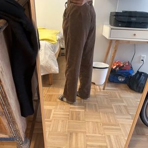 Brown corduroy pants, like new. Halara brand. Straight leg. Very nice for work or going out. Hipster feel. No size, but fits a size small-medium. ~ Size 26.