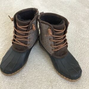 Brown herringbone winter boot