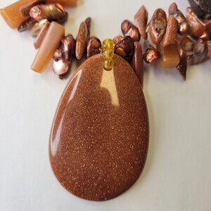 Goldstone Styled Fashion chips in irregular sized Necklace and Earrings set