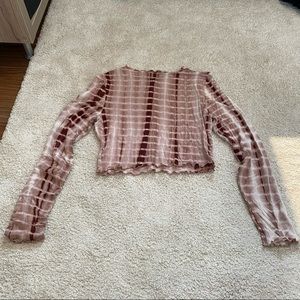 Brown and white patterned long-sleeve crop top with exposed seams Never worn and super trendy!