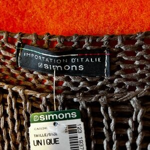 Brown ribbon mesh weave cropped sweater made in Italy new with tags. Ribbon threading knitted in a mesh-style openwork weave, cropped and relaxed fit, open collar, rolled edging, long sleeves, unlined. Colour is accurate in the stock photos, mine are taken in artificial light. Marked One size, I list it in S, M and L for exposure, but please note that the official size is ‘’One size’’. All measurements are approximate and taken with the garment laying flat: Armpit to armpit 21" Total length 16". This item comes from a smoke free, pets friendly home. Recycled bags/box used when possible. Please, let me know if you'd like any additional pictures and/or measurements or other info. Thanks for watching!