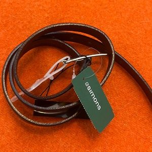 Brown thin silver buckle genuine Italian leather belt made in Canada NWT