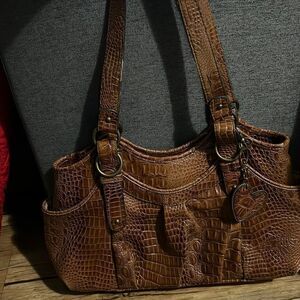 Brown Faux Crocodile Leather Jessica Simpson Shoulder Bag