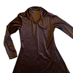 Brown Faux Velvet Long Sleeved Stretchy Dress/Top