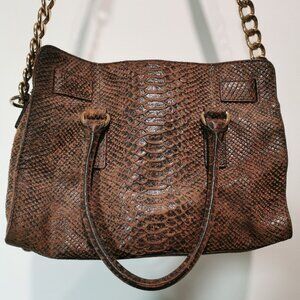 Brown/Gold Suede Croc Embossed Special Edition Satchel/Shoulder Bag #260
