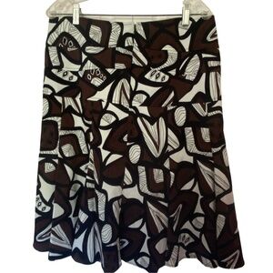 Brown/White Cotton Blend Casual Lunch Career A-line Flare Skirt. Sz 14
