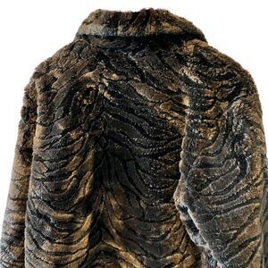 Brown Zebra Print Fuzzy Zip Up Mid Weight Teddy Jacket Coat M