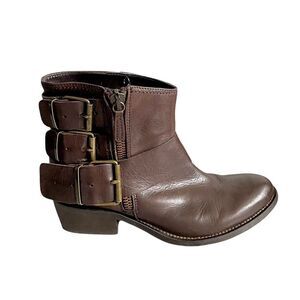 Browns B2 Brown Leather Ankle Boots With Buckles Inner Zip 38