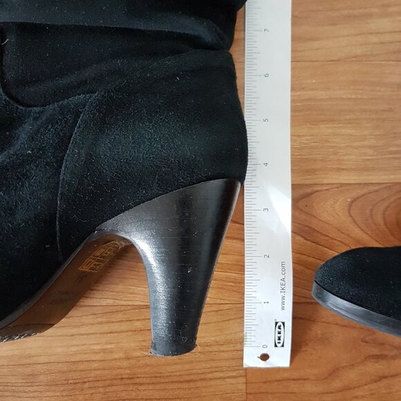 Size is 6, heel is approx. ~3.5 inches, total boot is ~18inches (see photos)