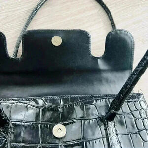 Browns Couture Black Croco Embossed Leather Shoulder Bag Made in Italy