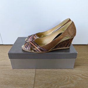 Browns Couture Embroidered Wedge Sandal, Brown / Gold / Multi, Size 8 B