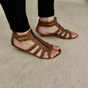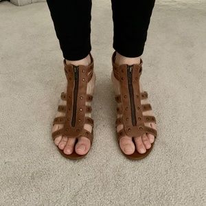 Tags: leather, sandals, low heel, wedge, summer, tan, women’s, gladiator