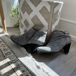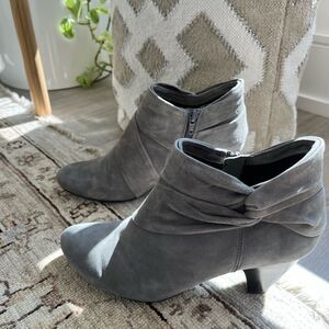 Brown’s Gray Suede Bootie, 3” chunky heel (8)