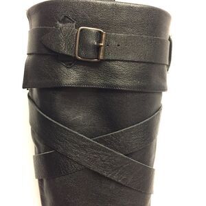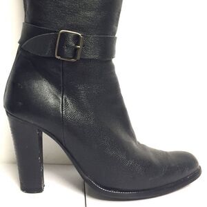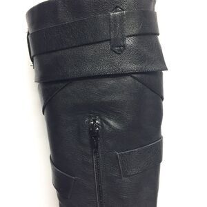 Browns Knee High Leather Boots Heel Straps Black