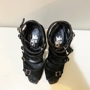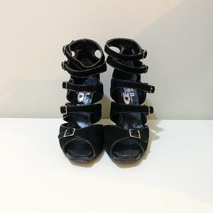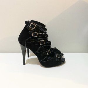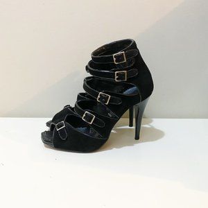 Browns Sexy Suede Leather Multi-Strap High Heel Sandals Black Silver Size 7