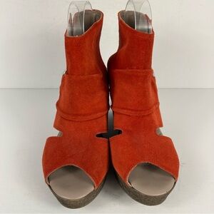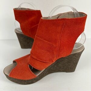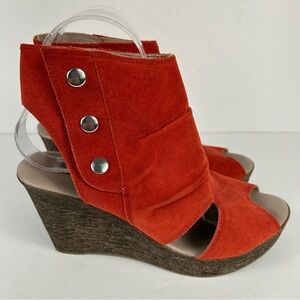 Step out in style with these chic red suede wedge sandals. Perfect for any occasion, these shoes offer both comfort and elegance.