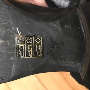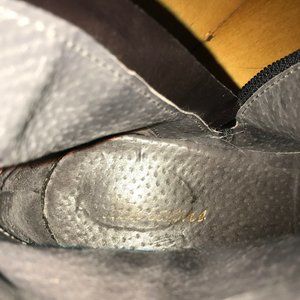 Beautiful leather boots that have been worn a handful of times, mainly in an office. Some scuffing on the bottom, but in otherwise excellent condition. The lettering is worn on the inside, but the brand is Browns. Size 39 can be seen on the sole of the shoe. Diameter around the top of the boot is about 15 inches, and shoe is about 17.5 inches tall (including a roughly 1 inch heel).