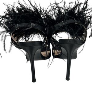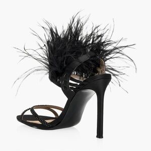 Browns NEW SIZE 7M Open Toe Strappy Cocktail Party Sandals with Ostrich Feathers Satin High Heels Pumps Rhinestone Straps Dress Event Formal Prom Wedding Guest Elegant